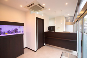 水の音による癒しの力が、皆様がリラックスして歯科治療を受ける上で少しでもお役に立てたら、との思いで、待合室に水槽を設置しました。