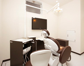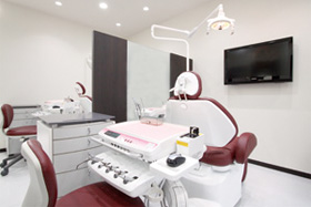 隣の患者様との視界を遮った、プライベートタイプの治療スペース。身体をすっぽり預けられる座り心地を重視した椅子、患者様が治療風景を見られる鏡を兼ねた高性能LEDライトを用い、リラックスした環境で、細部まで的確な治療を行います。
